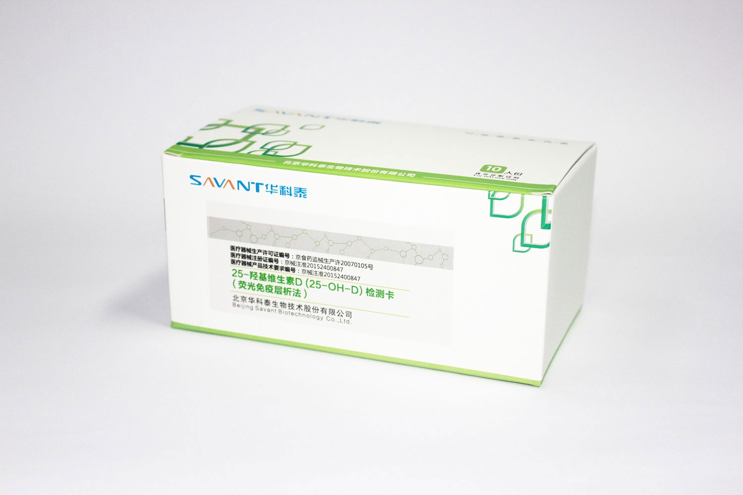 This test card is used for quantitative determination of 25 hydroxyvitamin D in human serum, plasma or whole blood in vitro. Vitamin D is a kind of sterol hormone, which is produced by skin light. Two important forms of vitamin D include vitamin D3 (cholecalciferol) and vitamin D2 (ergocalcitol). In human body, vitamin binding protein combines with vitamin D3 and vitamin D2, and transports them to liver, where both forms are hydroxylated to produce vitamin D, namely 25 hydroxy Basic vitamin D. 25 hydroxyvitamin D is a kind of metabolite, which can be detected in blood. Because it is the main storage form of vitamin D in human body, it can promote intestinal absorption of calcium and regulate calcium balance. Vitamin D is the main element to maintain bone health. Severe deficiency of vitamin D in childhood will lead to skeletal deformity, rickets. The decrease of 25 hydroxyvitamin D is related to the decrease of bone mineral density. Combined with other clinical data, the results are helpful to evaluate bone metabolism.